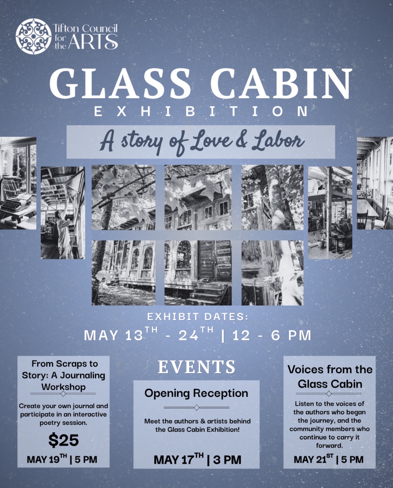 The Syd Blarckmarr Arts Center — Glass Cabin Exhibition, a Collaboration with Artist Michael Johnson — Wednesday, May 13 – Thursday, May 24, 2026 — Tifton Council for the Arts — Tifton, Georgia